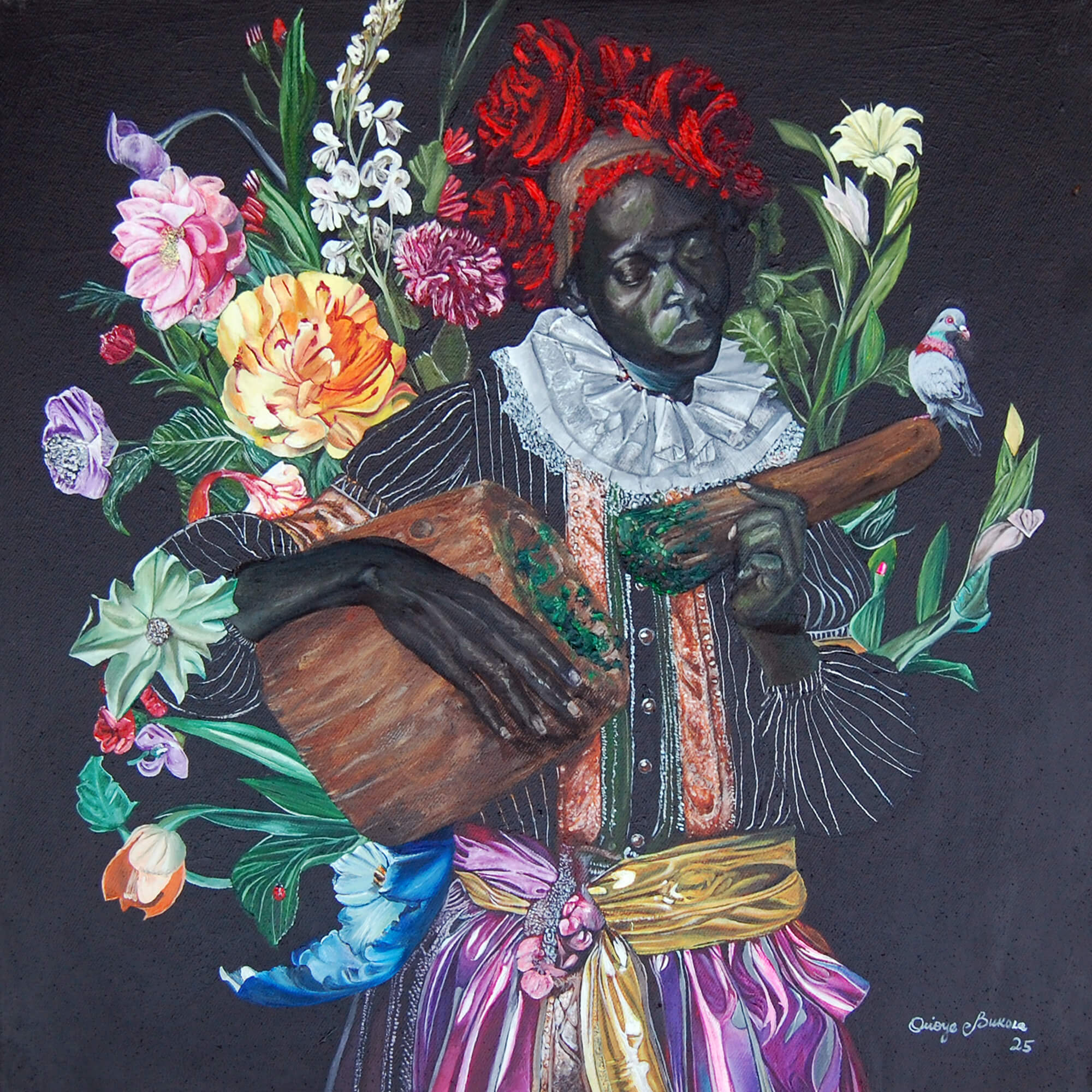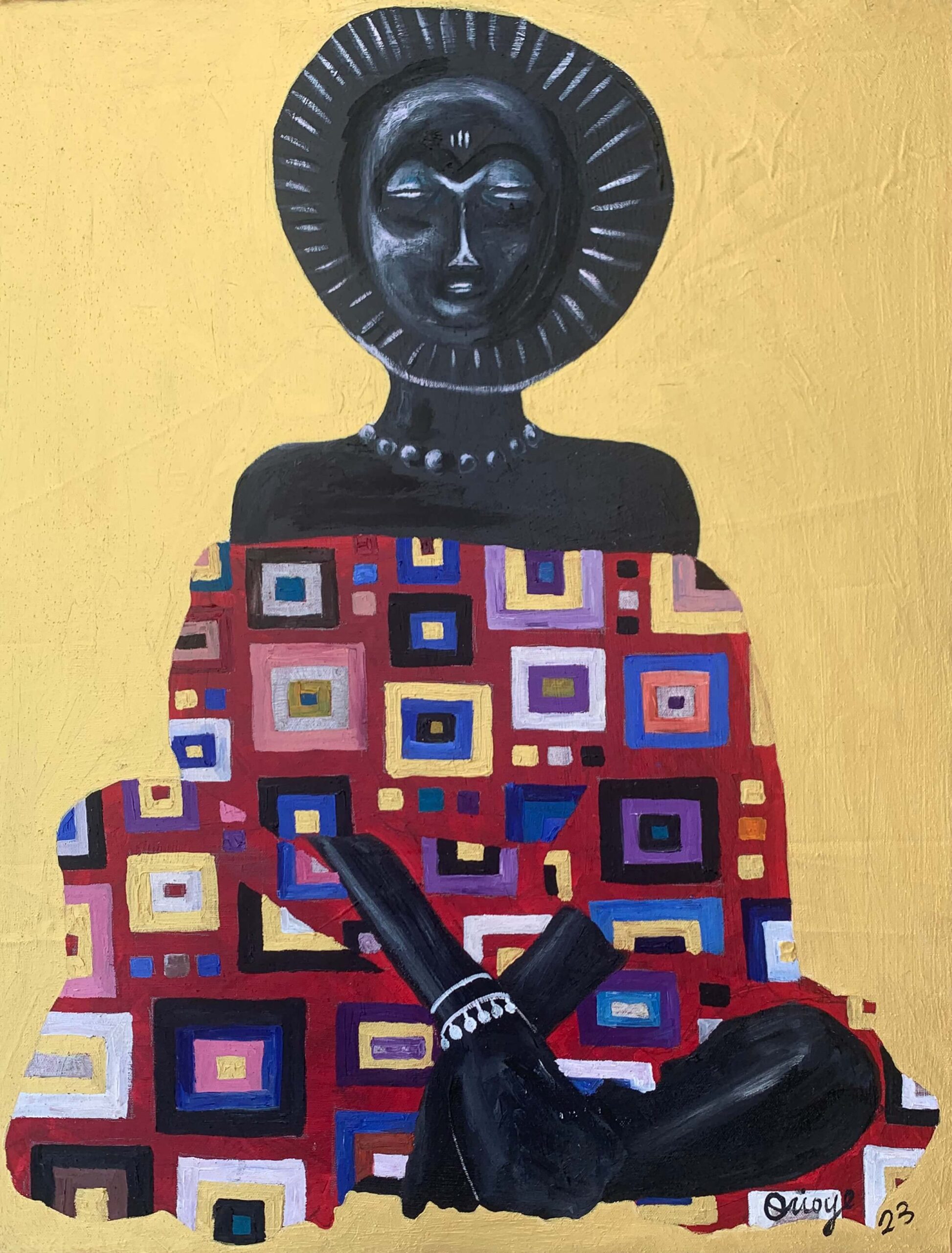 Nature emerges as a vital interlocutor in this visual discourse. The florals that crown or accompany these figures are more than ornamental motifs; they signify renewal, interdependence, and the cyclical vitality of life. Their presence affirms the deep ecological consciousness embedded within ancestral knowledge systems, an understanding that human flourishing is indivisible from the health of the natural world. In an era marked by environmental crisis, these works recall the ecological wisdom of our forebears and foreground it as essential guidance for contemporary climate stewardship.